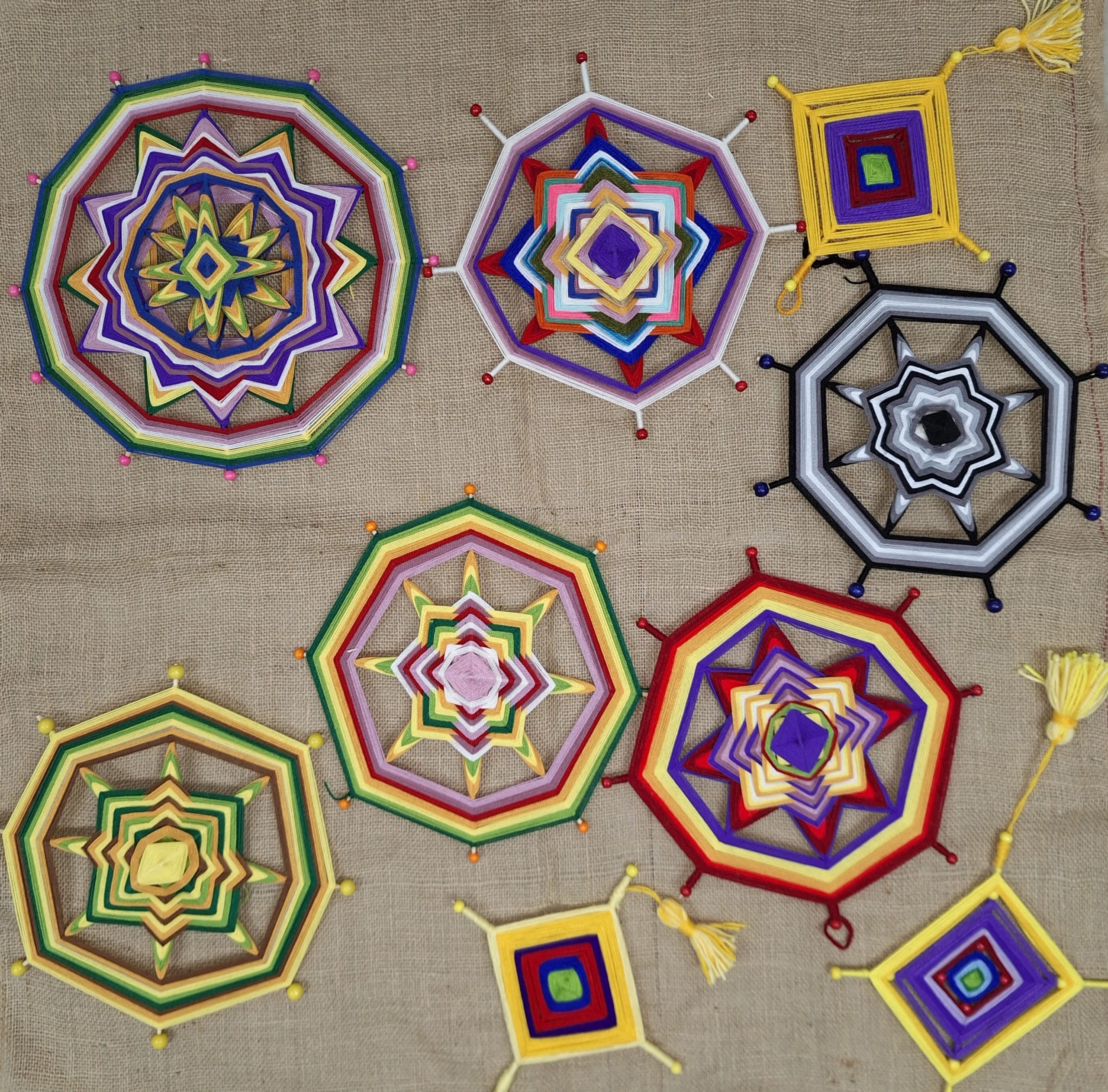 Los y las participantes explorarán la creación de mandalas con lanas e hilos, desde la selección de colores hasta la aplicación de técnicas de tejido circular. Cada sesión se enfocará en la integración de elementos personales y la reflexión espiritual.